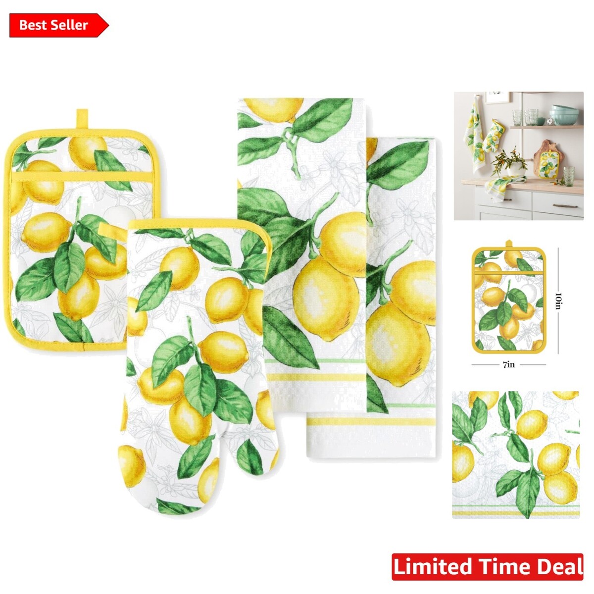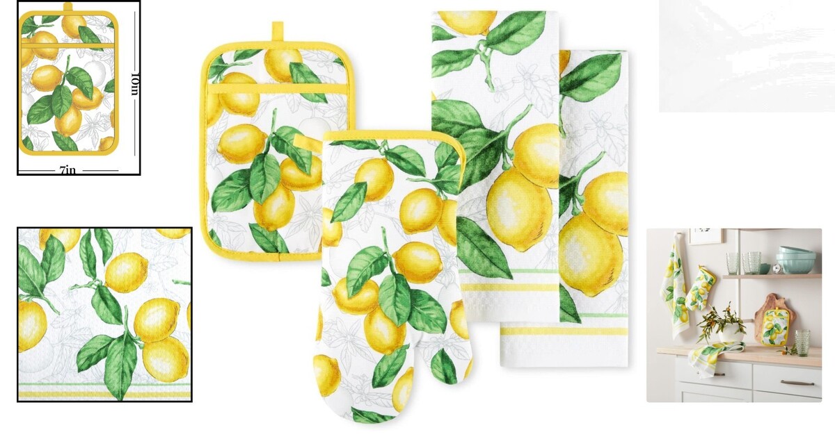 Transform your cooking space today?order your Elegant Lots of Lemons 4-Piece Kitchen Textile Set and embrace sophistication with every culinary endeavor!