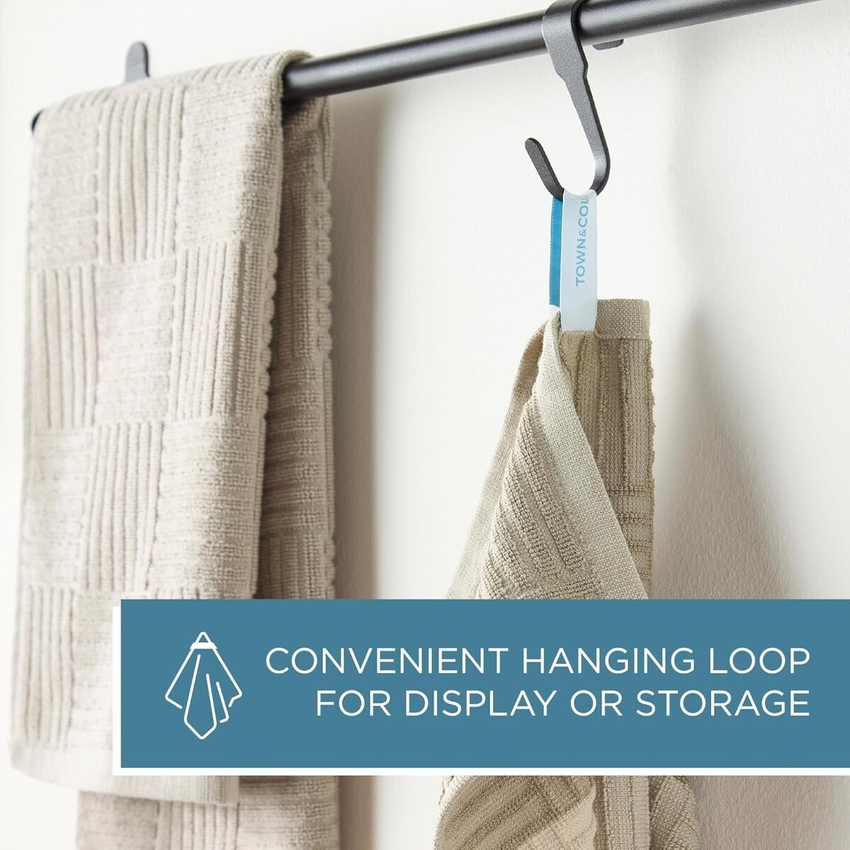 Convenient hanging loops allow for easy drying and display.