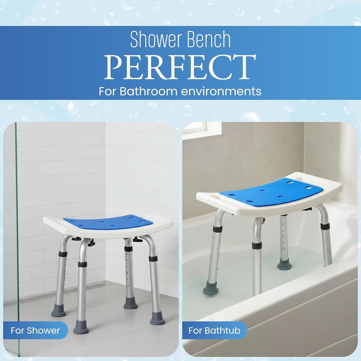 Adjustable Height: Customizable height settings from 13.4" to 18.5", allowing versatility to fit any tub or shower.