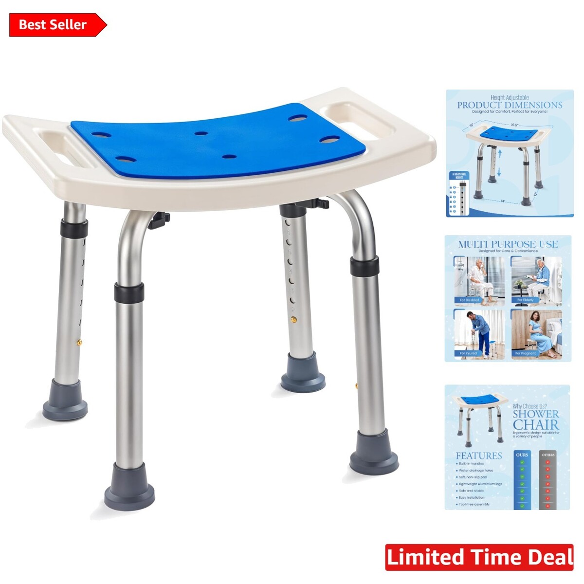 Don't compromise on safety or style in your bathing routine. This elegant shower seat combines materials with thoughtful design for a secure and comfortable experience. Its heavy-duty capacity, adjustable height, and anti-slip features make it the perfect companion for anyone needing extra assistance in the shower.