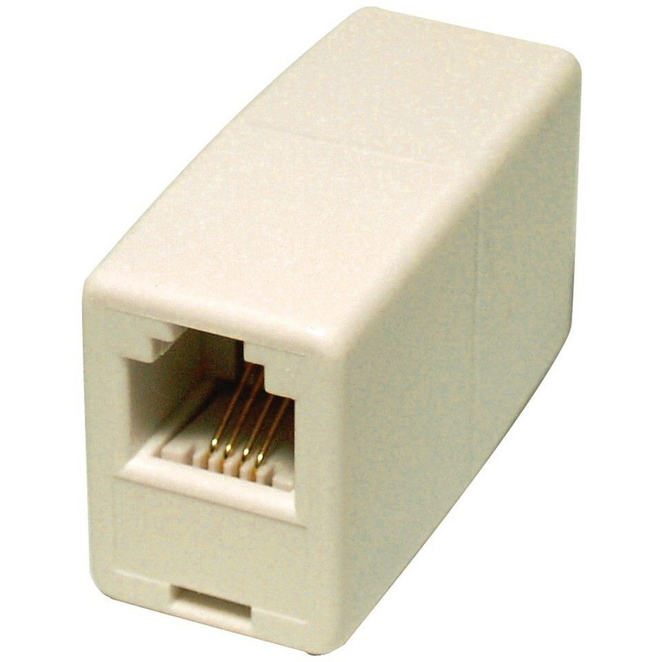 1 Telephone Line Cord COUPLER Almond Modular F/F connect rj-11 rj-14 6P6C GE