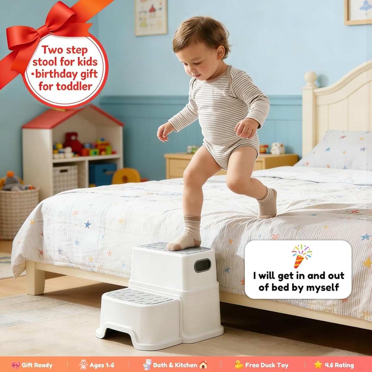 With added fun elements like rubber ducks, cleaning up is a breeze with its smooth surfaces. Lightweight and portable, it's easy for little hands to carry wherever needed. Plus, enjoy peace of mind with our 12- . Give the gift of independence?order the perfect Toddler Step Stool today!