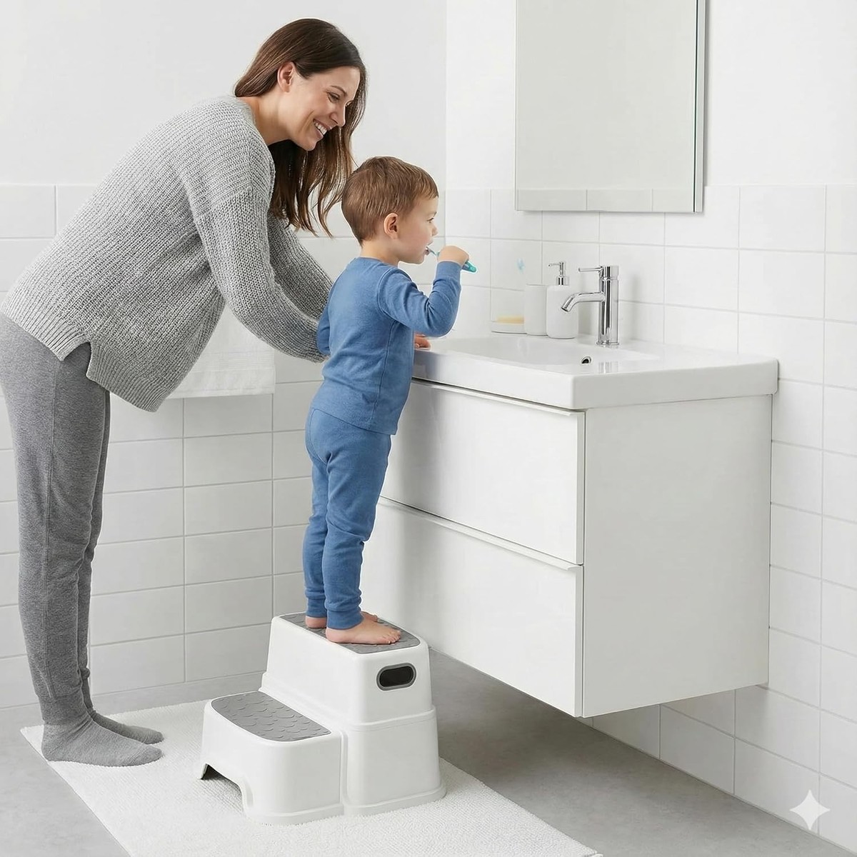 3-in-1 versatile portable design: Use as a dual-step stool, single stool, or toddler chair.