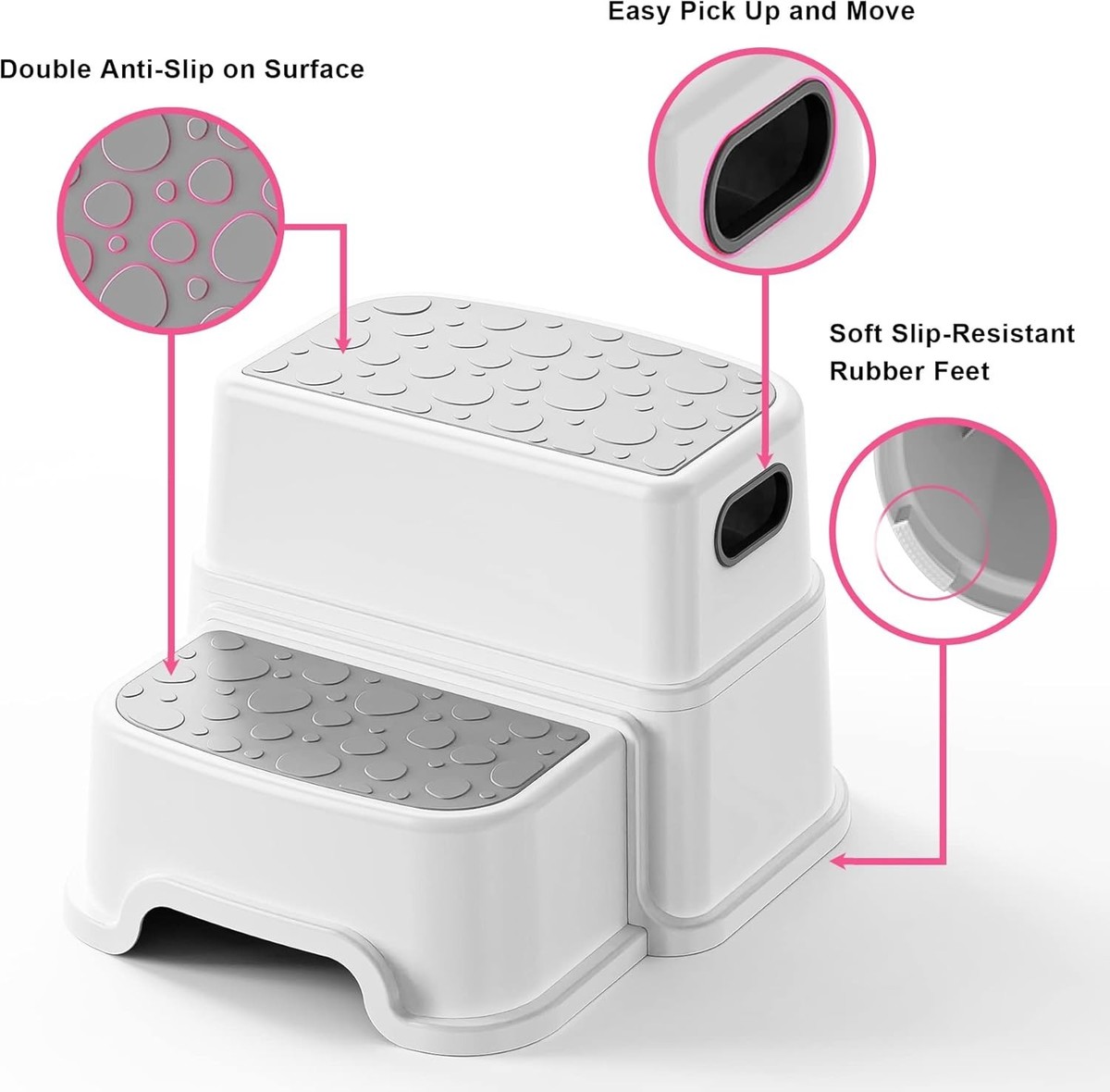 Toddler Step Stool with 2 Steps - Non-Slip Portable for Potty Training