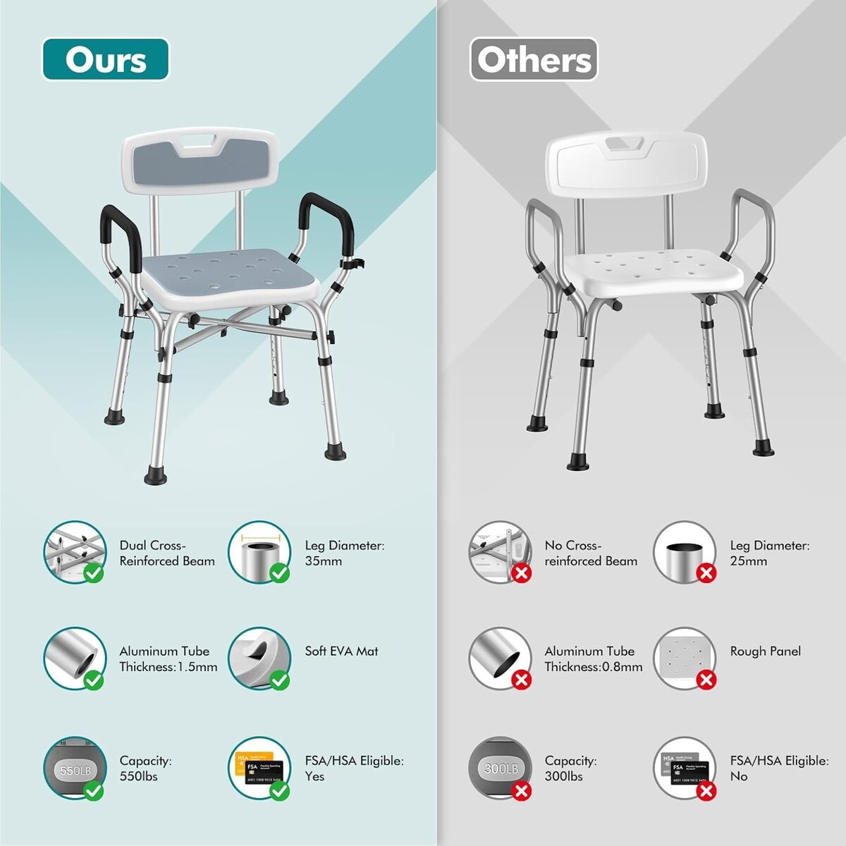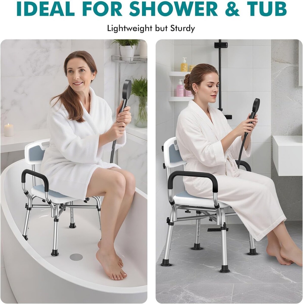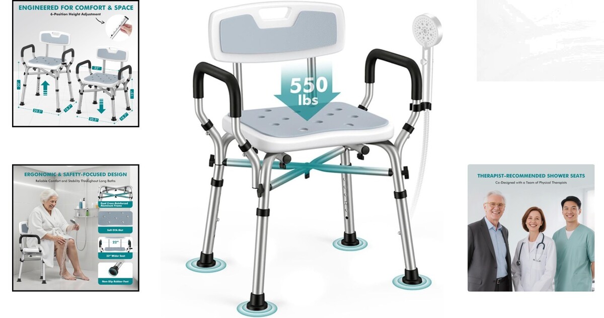 Heavy-Duty Shower Chair - 550 lbs, Tool-Free Assembly, Ideal for Disabled Users
