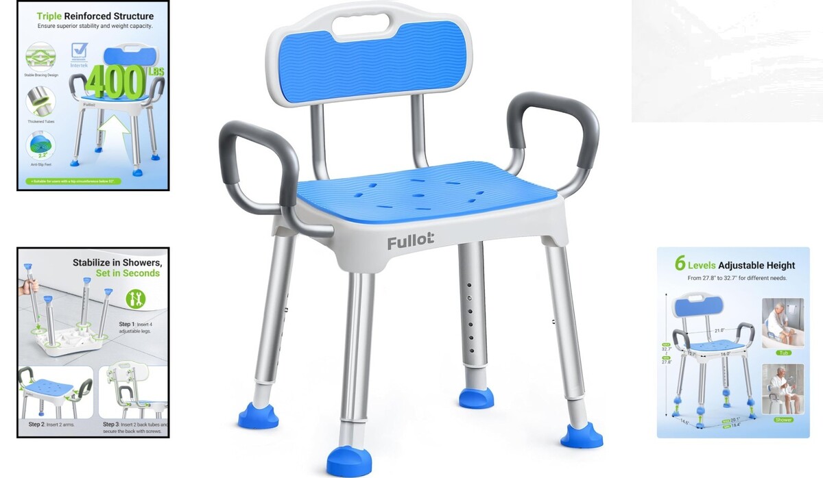 Adjustable Shower Seat with Padded Arms & Non-Slip Design - 400 lbs
