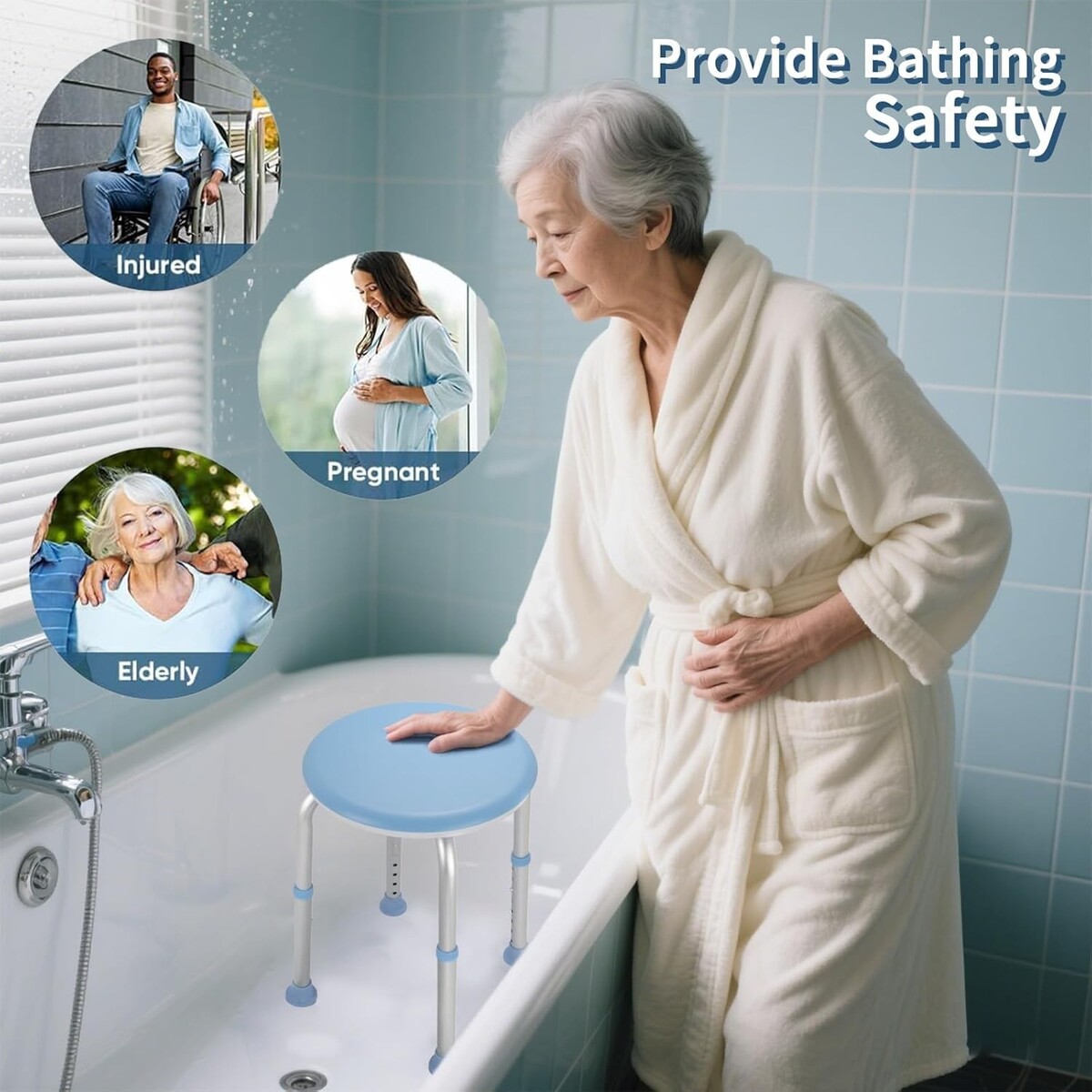 360 Rotating Bath Seat - Height Adjustable Shower Stool for Elderly, 350 lbs
