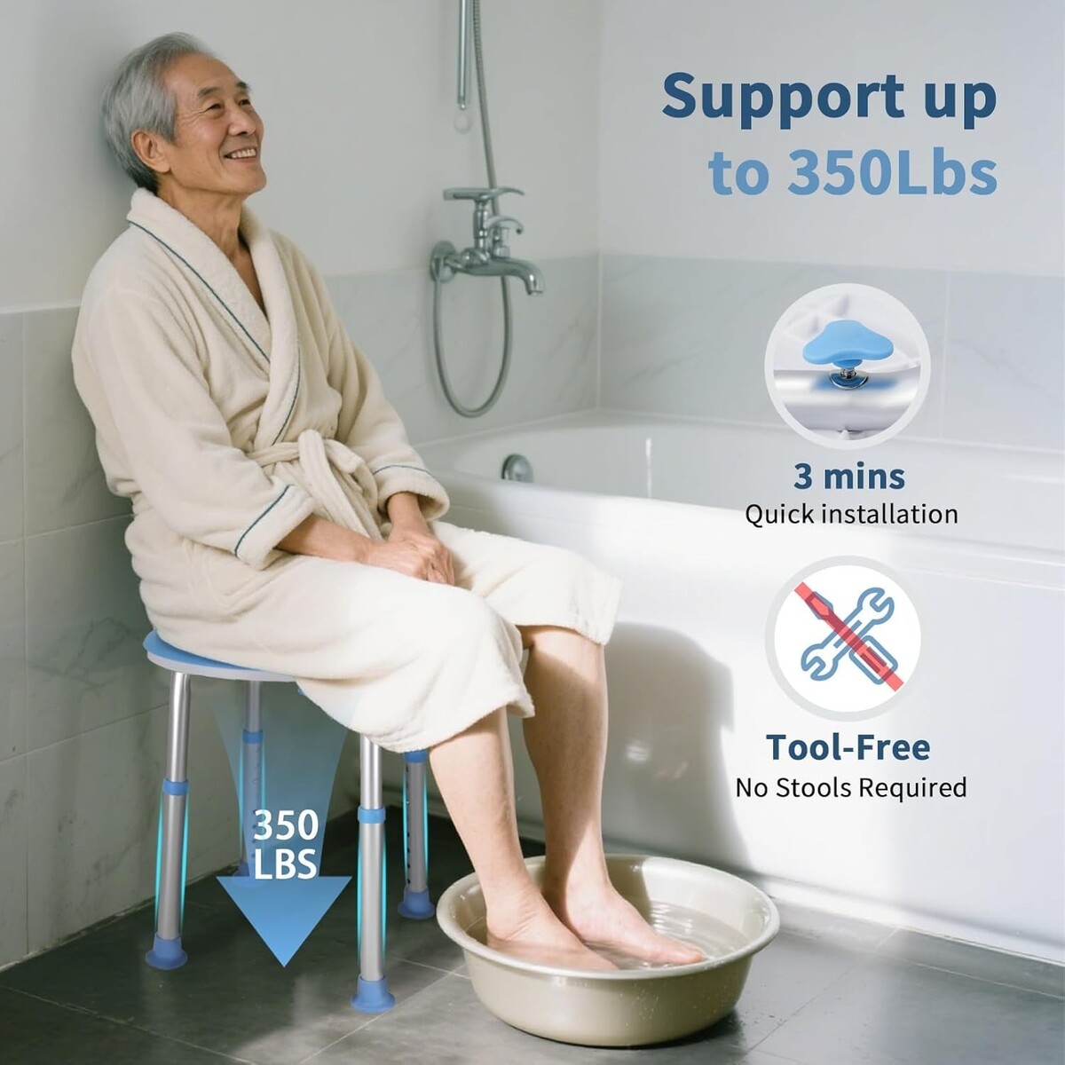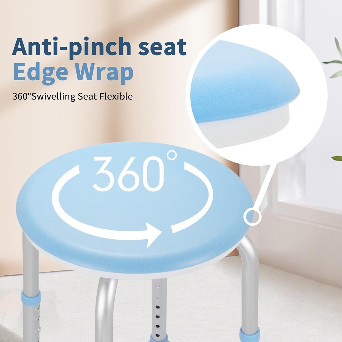 360° Rotating Bath Seat - Height Adjustable Shower Stool for Elderly, 350 lbs