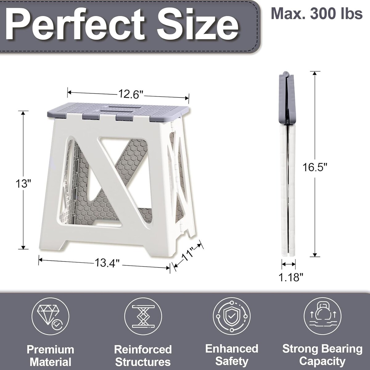 Supports up to 300 lbs. for reliable use during shower routines, reaching high shelves, or quick seating.