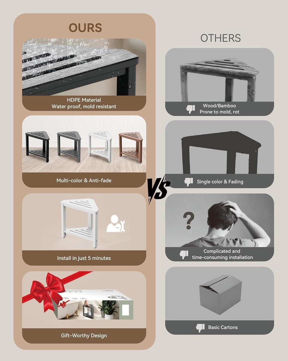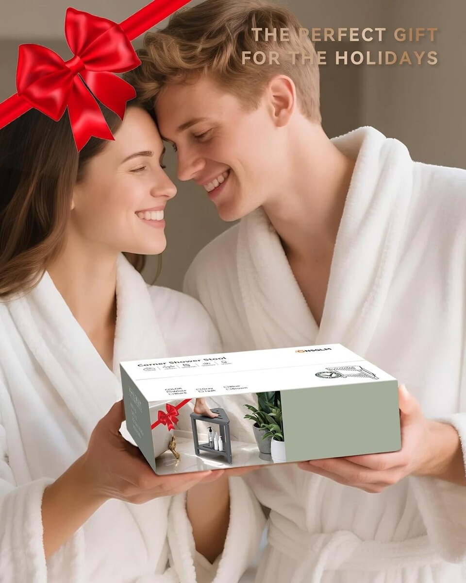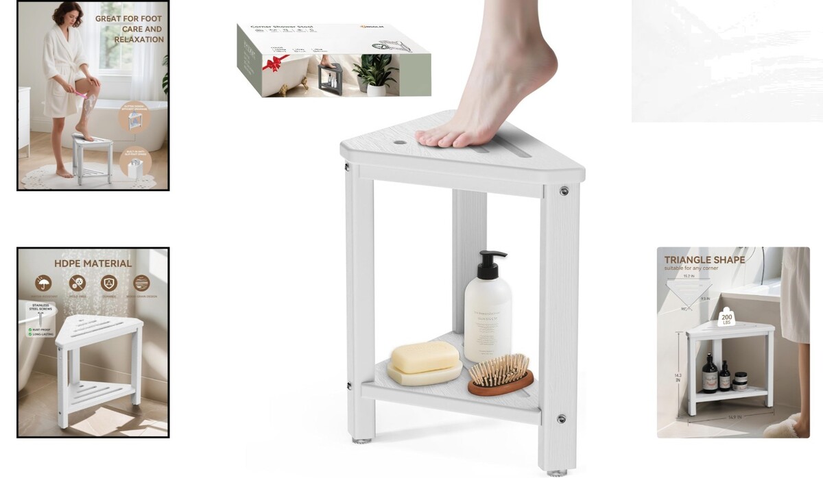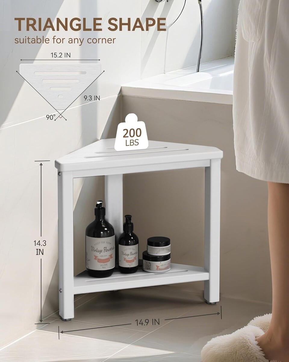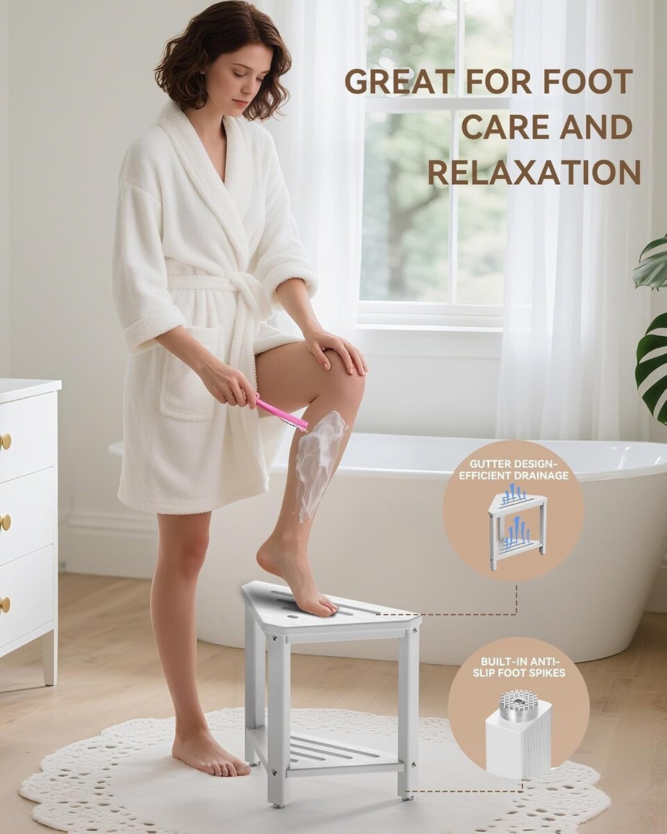 15-Inch Waterproof Shower Foot Stool - Space-Saving Triangular Design