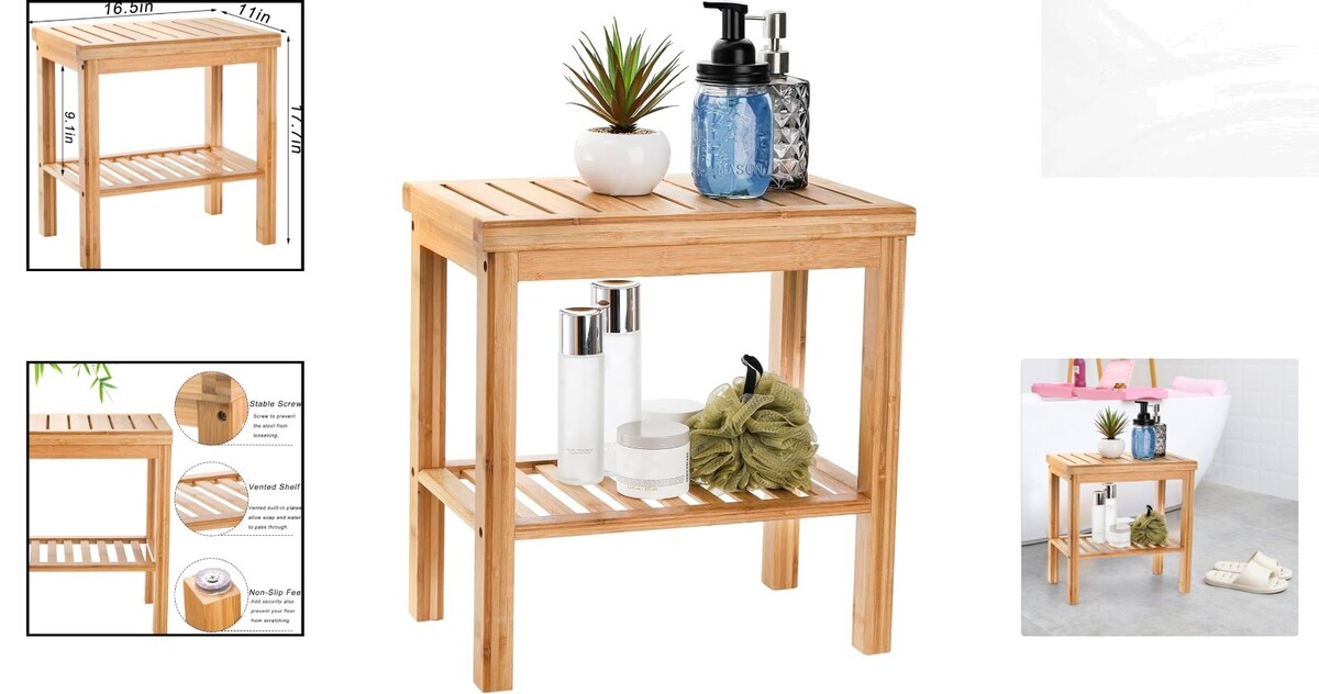 Elevate your bathing experience with this exquisitely crafted shower stool, featuring a functional storage shelf designed for elegant bathrooms.