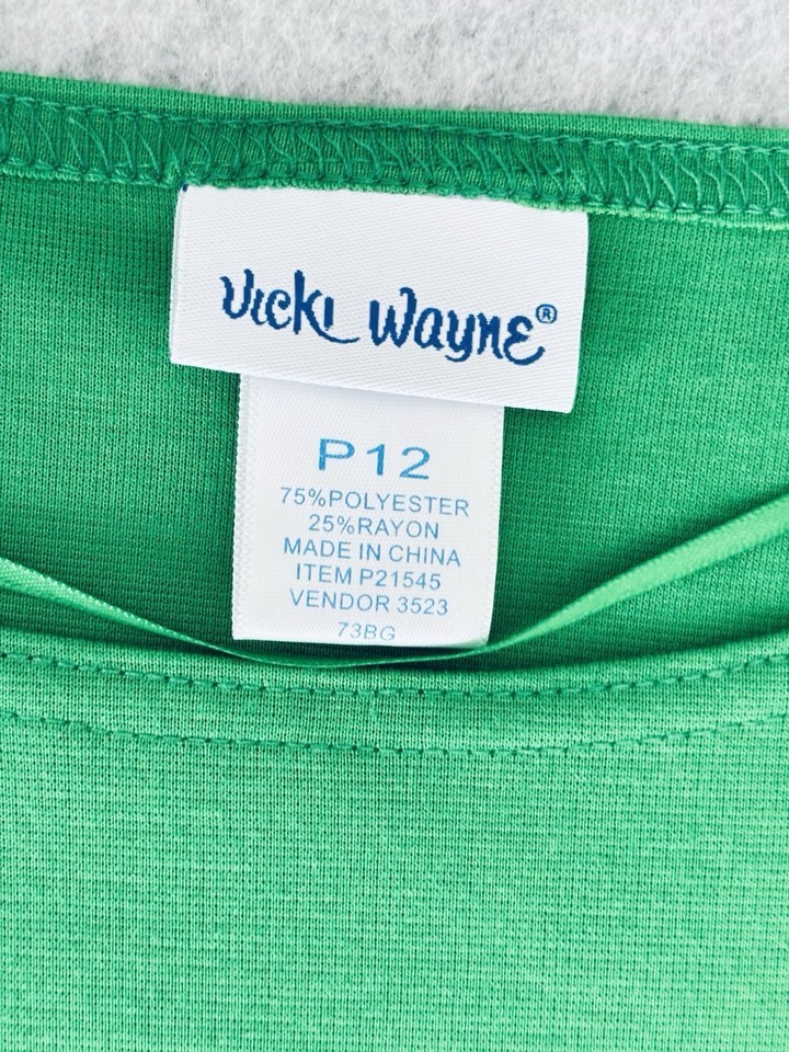 Vicki Wayne Lime Green Shift Dress Womens Size Petite 12 - Stretchy - Cute Retro