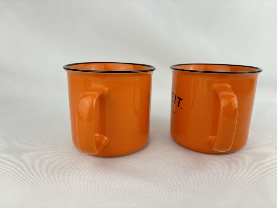Bulleit Frontier Whiskey Orange Ceramic Coffee Mug Cup Matching Set of TWO