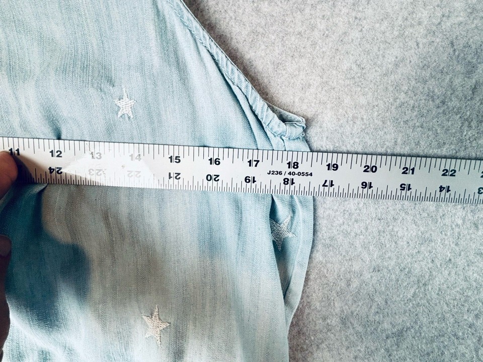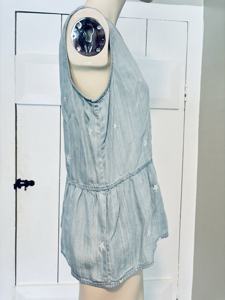 Velvet Heart Peplum Tank Top Light Blue Chambray White Embroidered Stars Med