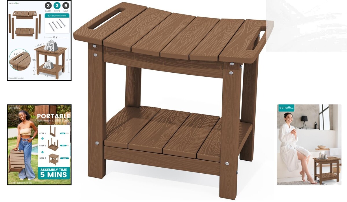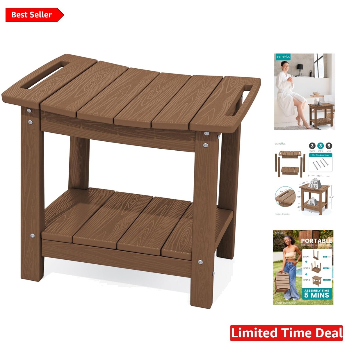 18" HDPE Waterproof Shower Bench - 360 lbs Capacity with Storage Shelf Handles