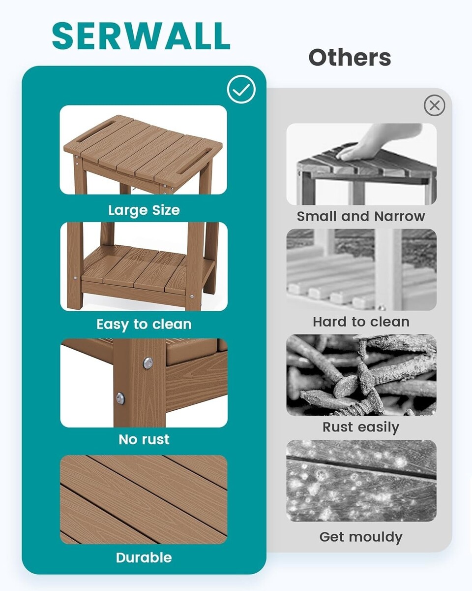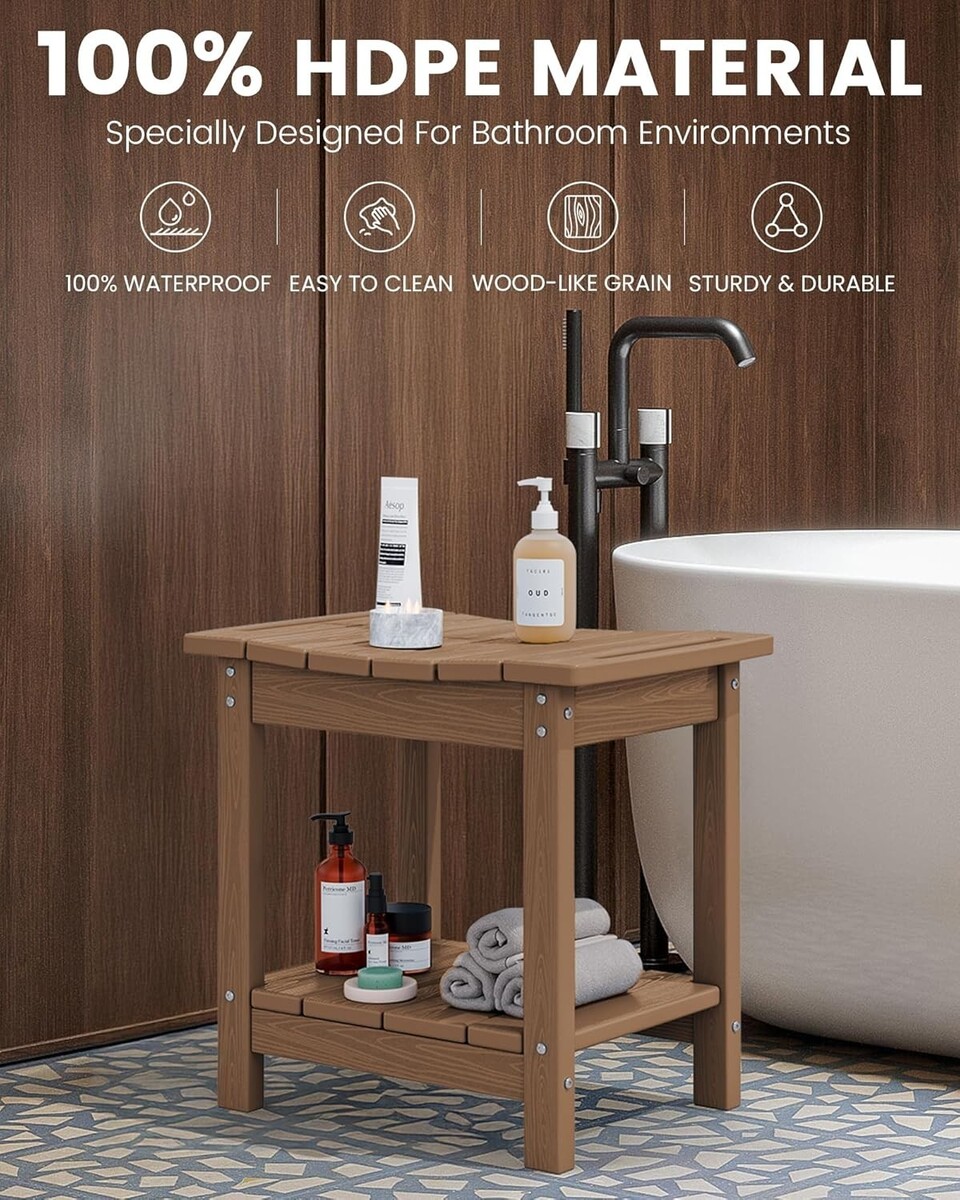 Versatile 4-in-1 multi-usage: Ideal as a shower seat, outdoor bench, side table, or Adirondack ottoman.