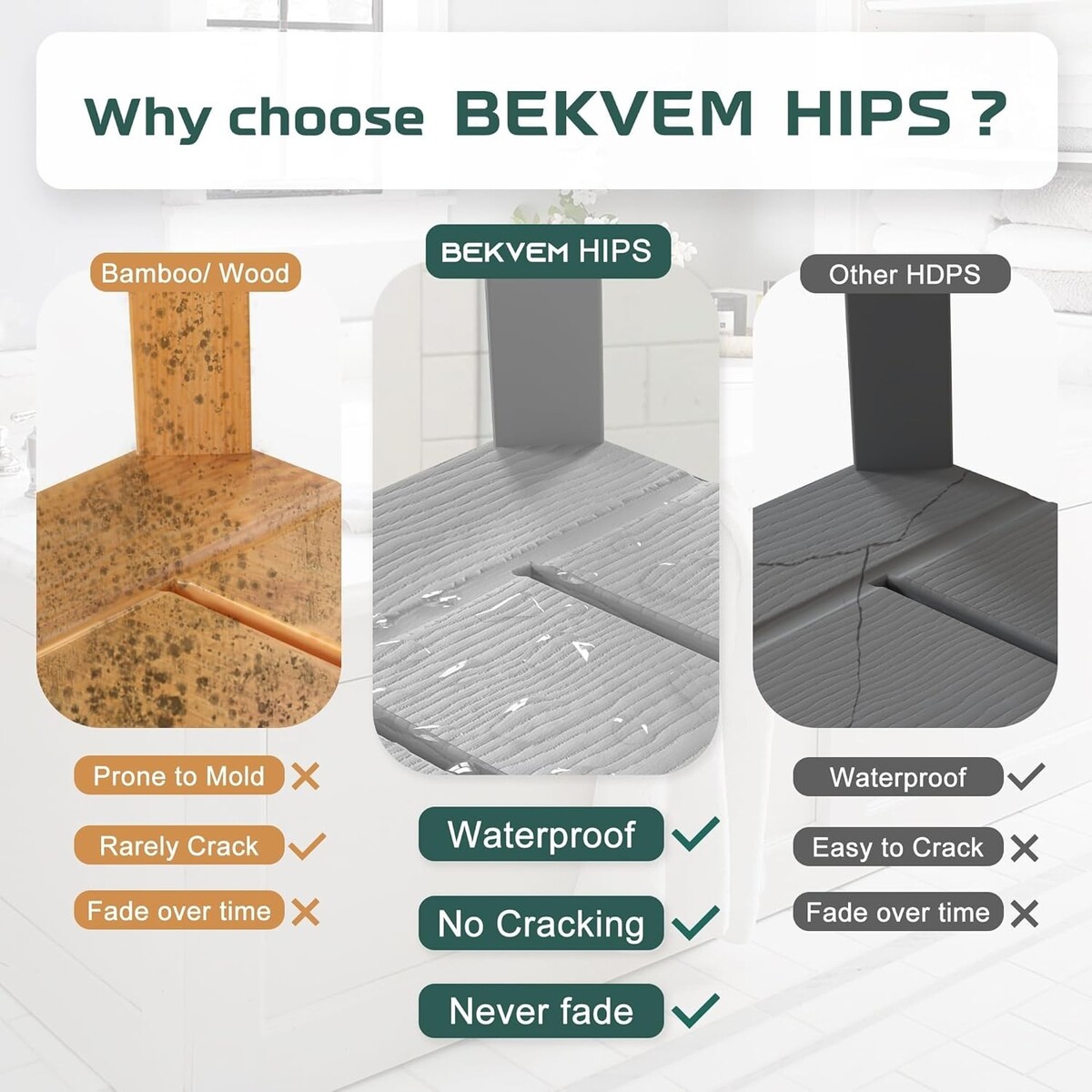 Waterproof Durable: Constructed with HIPS and secured with 304 stainless steel screws, this shower stool remains unfazed by water exposure, never fading or developing mold ? built for longevity with minimal maintenance.