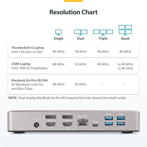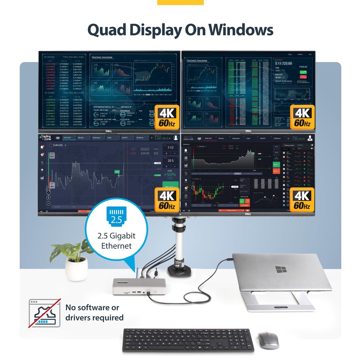 StarTech.com Thunderbolt 4 Dock - Dual 4K MacBook Pro and M4 Air, Quad Monitor 4