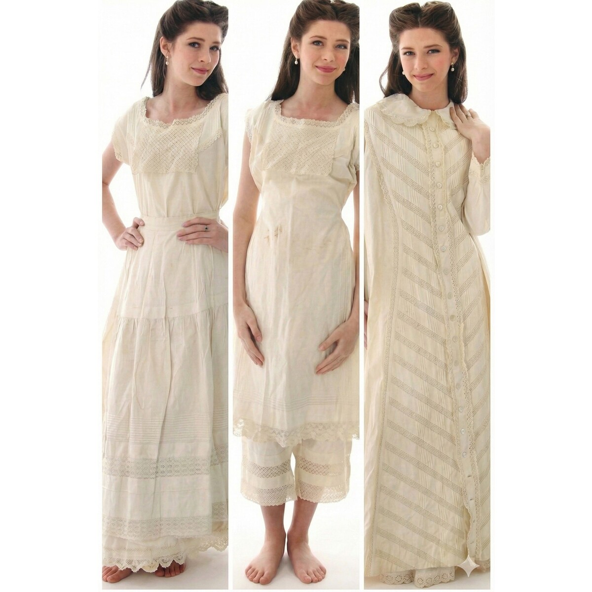 Antique Victorian 5-Pc Wedding Trousseau Set Fancy Whites Large Romantic Cottage