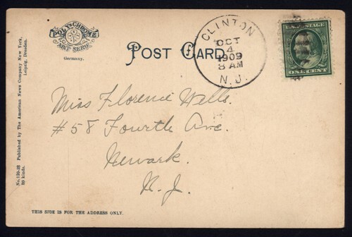 1909 UNDIVIDED BACK postcard Statue in snow - posted Clinton to Newark NJ 1c