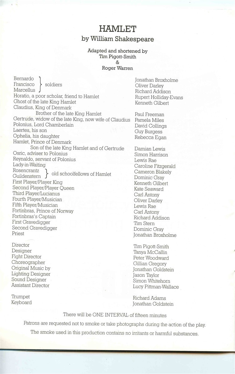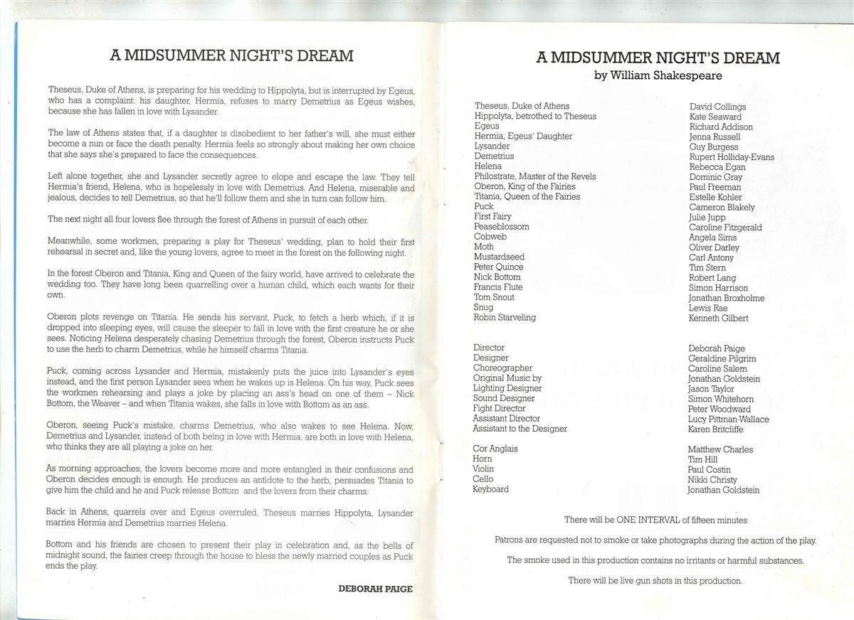 Open Air Theatre Program Regents Park Midsummer Nights Dream Hamlet The Card