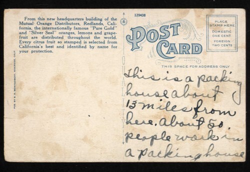 HOME of MUTUAL ORANGE DISTRIBUTERS - REDLANDS CALIFORNIA * writing not posted