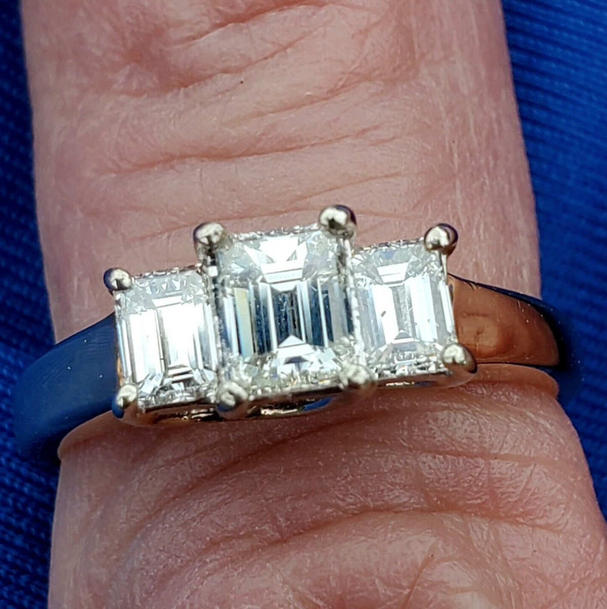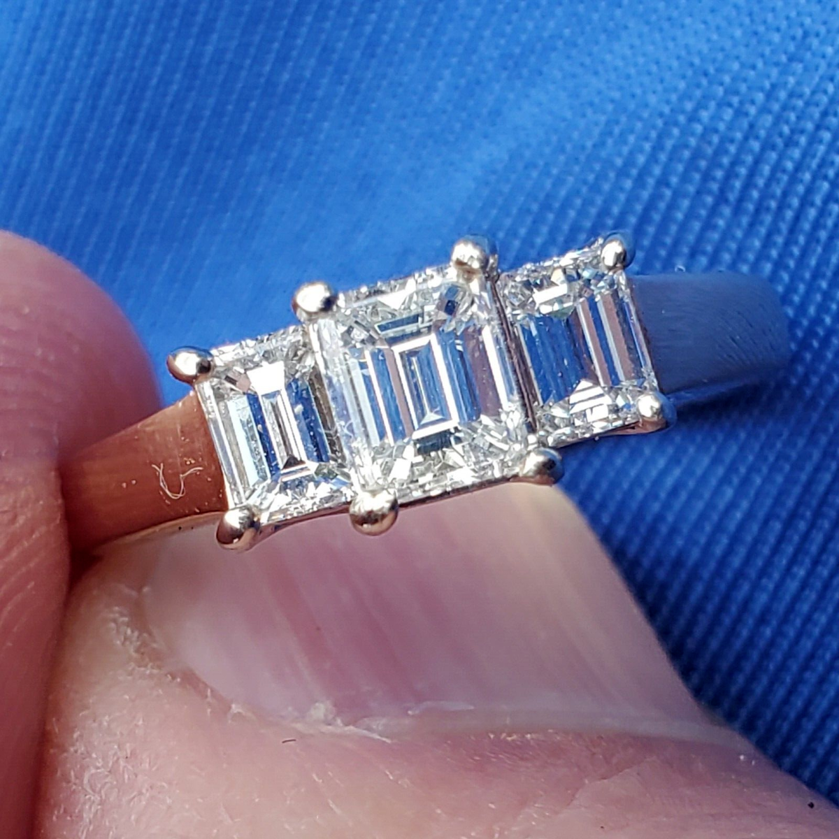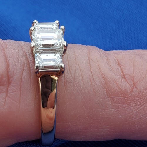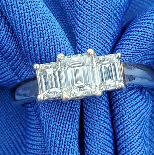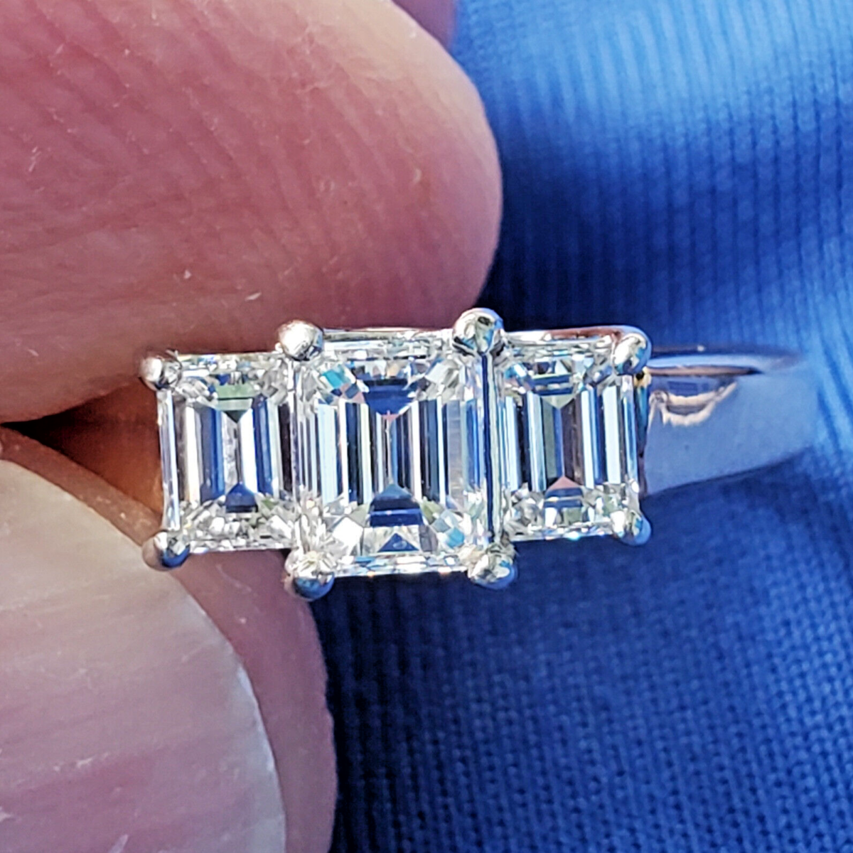 3 large natural emerald cut diamonds perfectly matched.