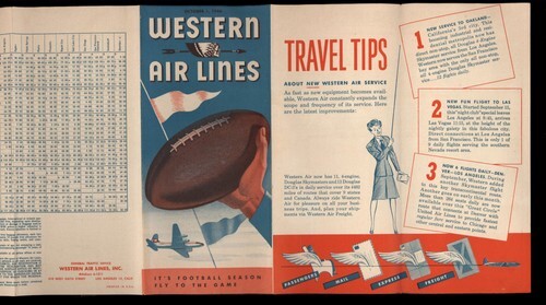 WESTERN AIRLINES October 1946 *TIMETABLE SCHEDULE & FARES *it's FOOTBALL SEASON