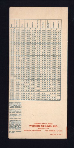 Western Airlines October 1946 *Timetable and similar items