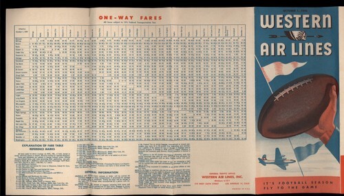 WESTERN AIRLINES October 1946 *TIMETABLE SCHEDULE FARES *it's FOOTBALL SEASON
