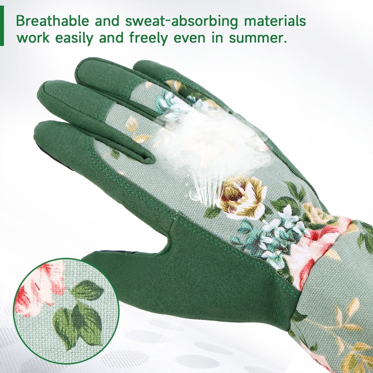 Stylish Women's Gardening Gloves - Durable & Comfortable Green Print Medium