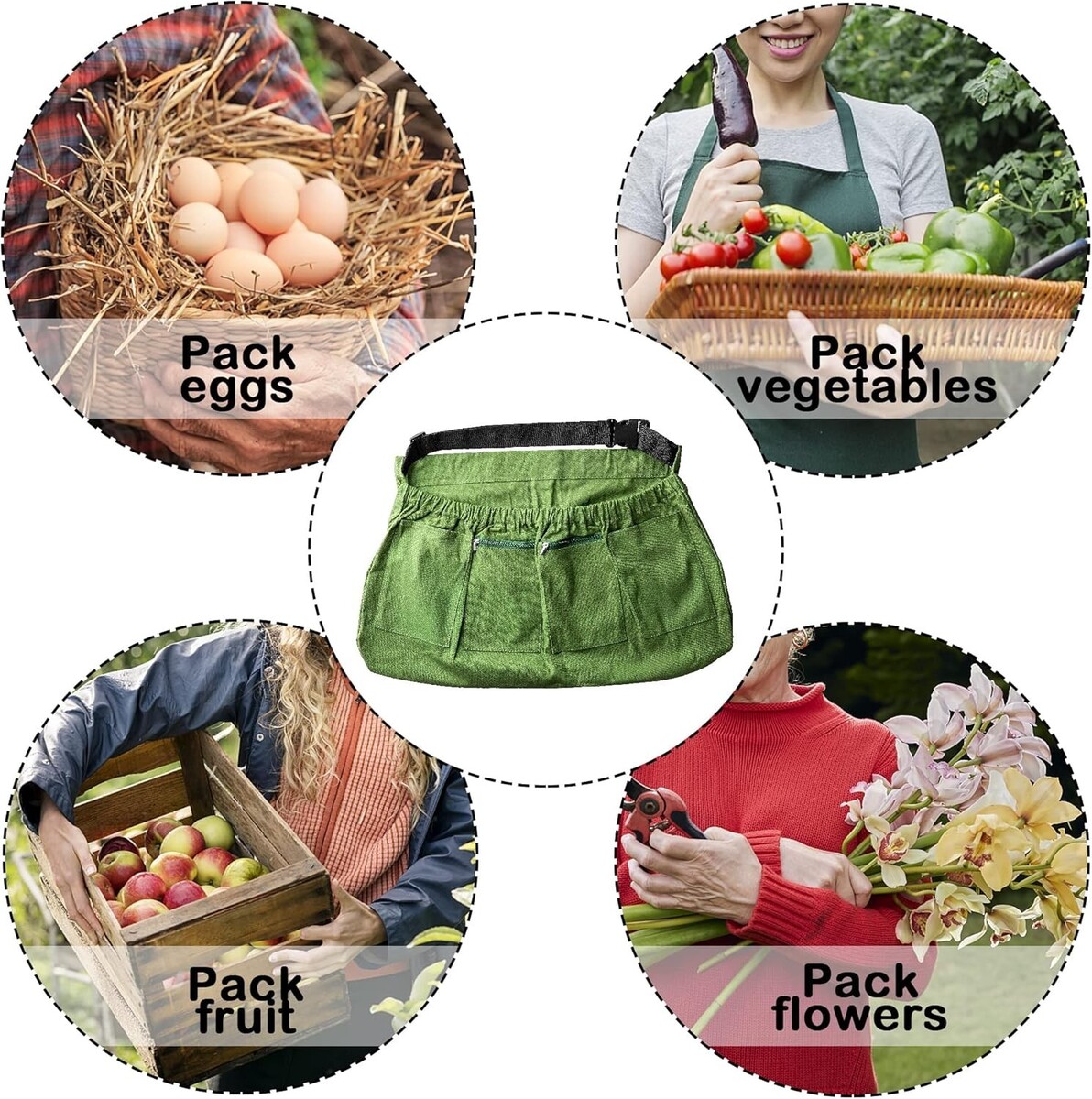 Stylish Green Garden Apron with 4 Pockets - Ideal for Harvesting & Weeding