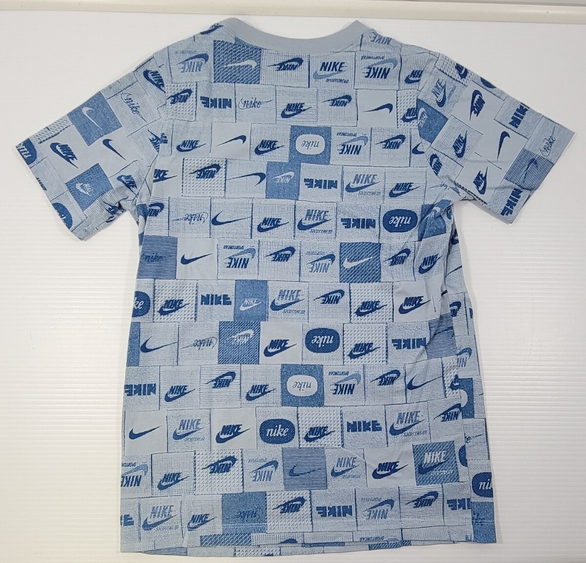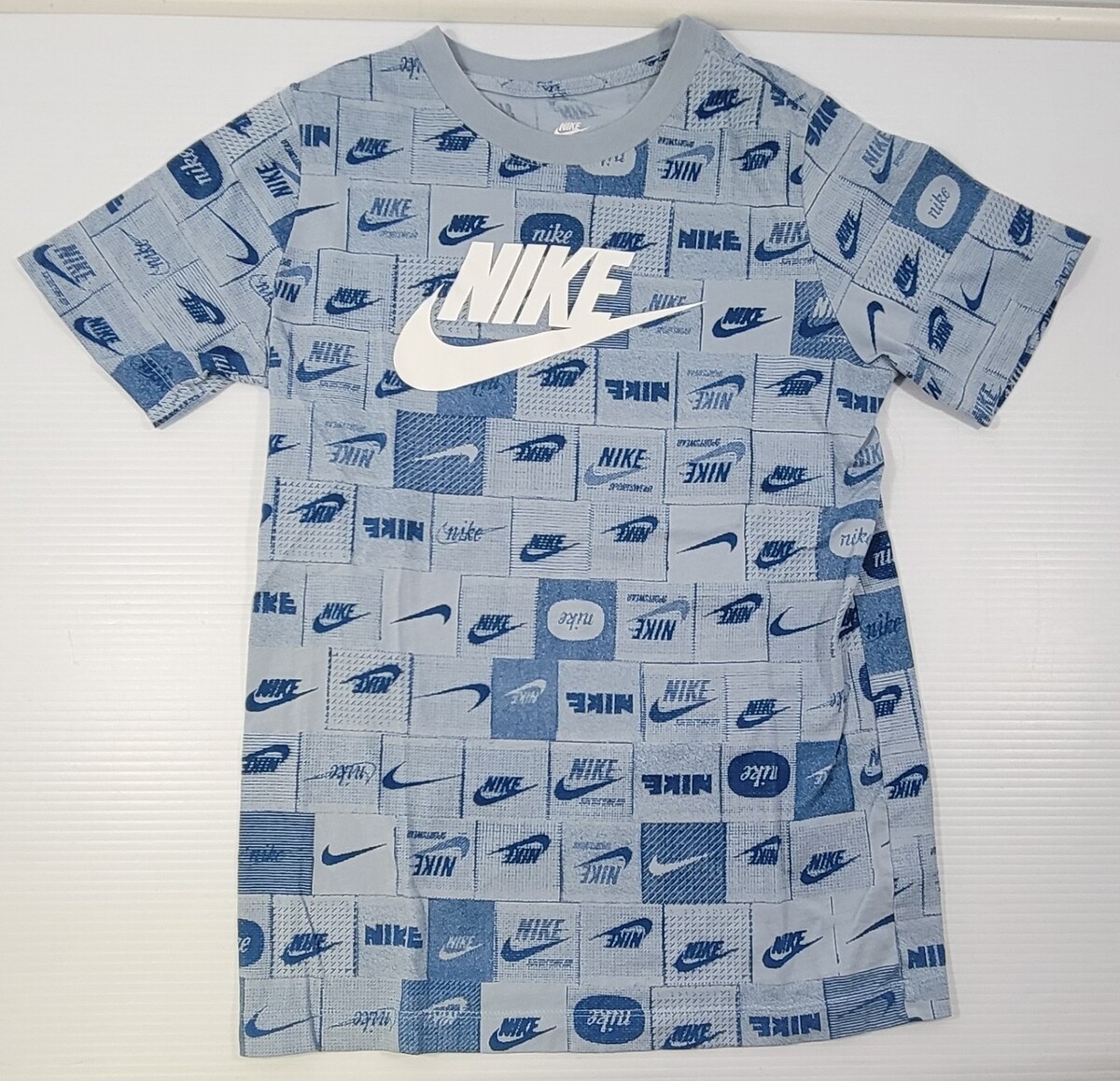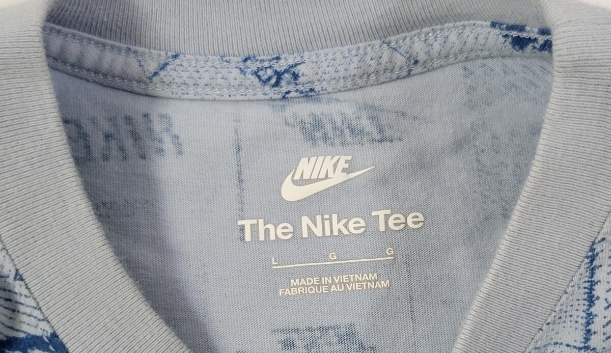 F1) The Nike Tee Kids AOP All Over Print Graphic Logo Blue Cotton Shirt Large