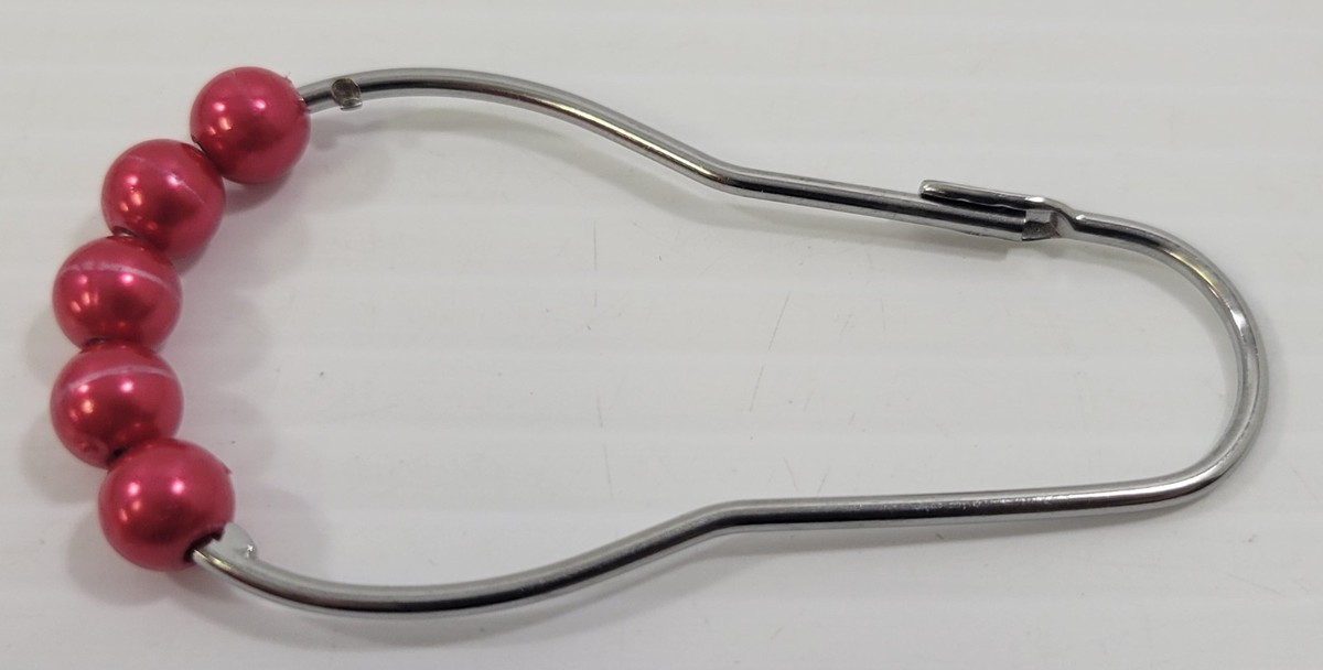 e5) Holiday Red Shower Curtain Rings Hooks Acrylic Roller Balls Stainless Steel