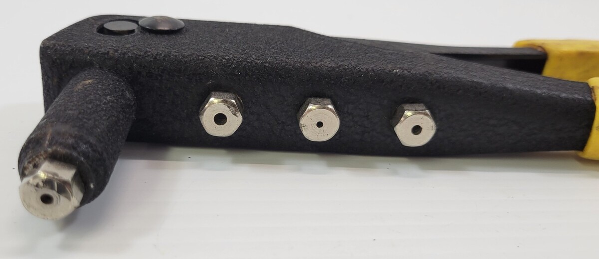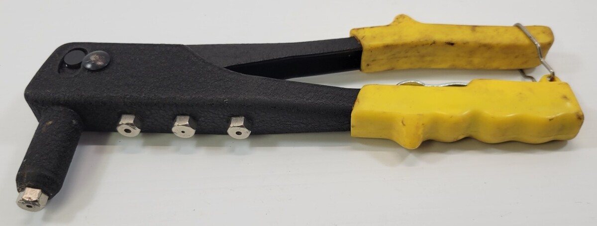 Riveter tool is vintage used old garage/shop inventory with signs of age, use and years of storage. Rivets are not included.