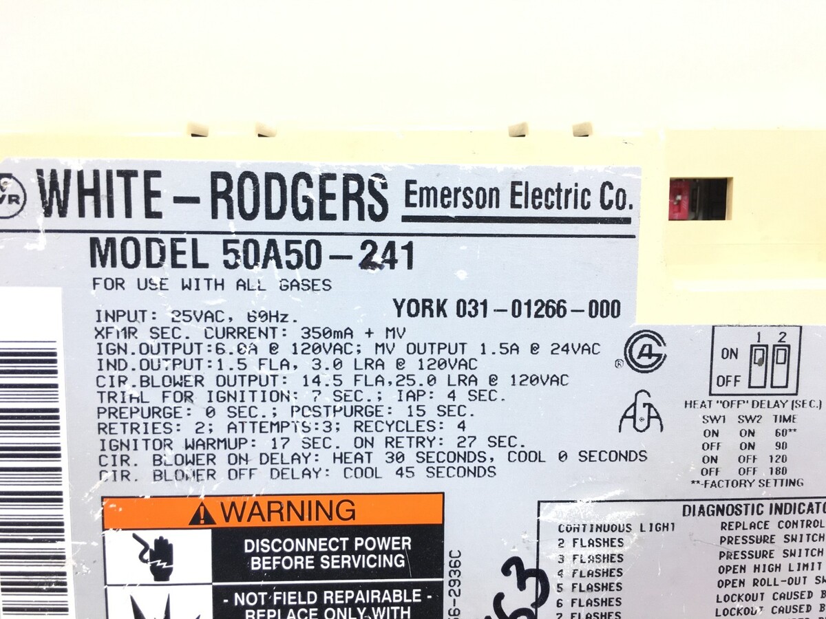 White Rodgers 50A50-241 York 031-01266-000 Furnace Control Board used #P163