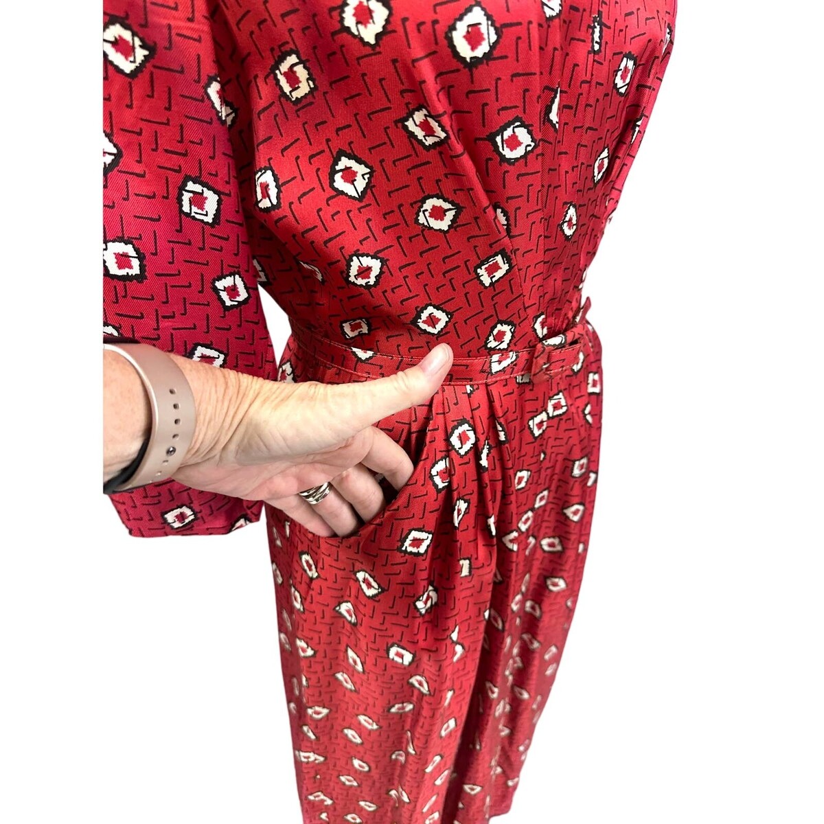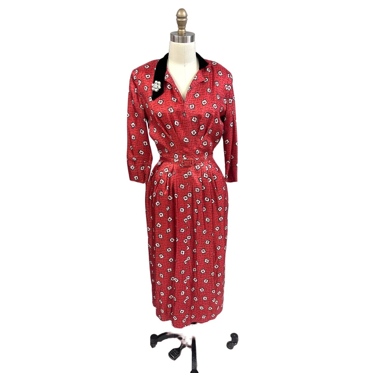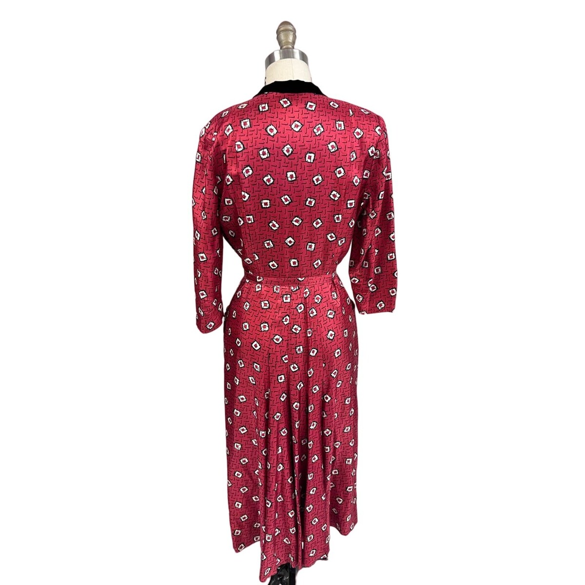VTG 1940s 50s Atomic Wiggle Secretary Bombshell Dress Red Black White Belted M