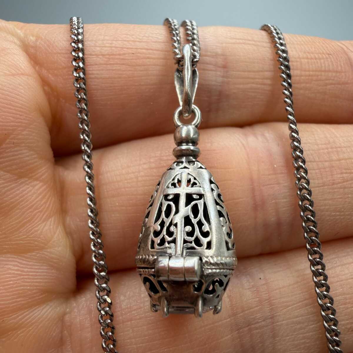 Vintage Sterling Silver 925 Virgin Mary Religious Pendant Cross Locket Necklace