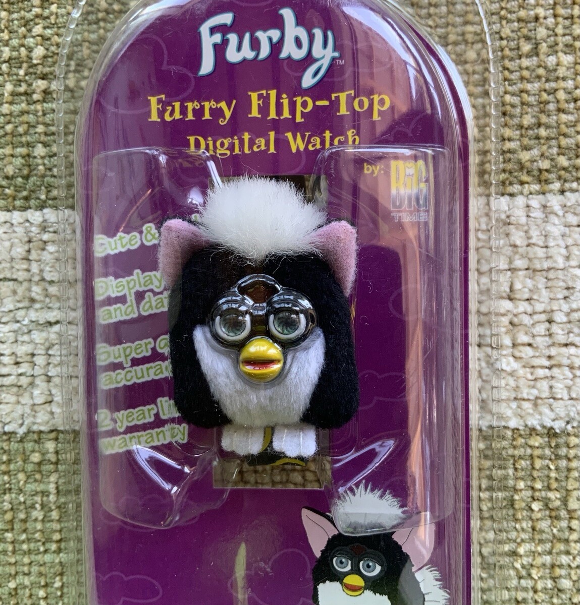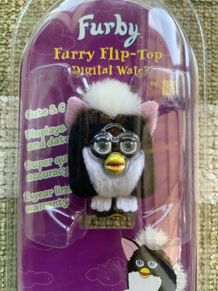 The FURBY Furry ?Flip-Top? Digital Watch by Tiger is a nostalgic electronic toy from 1999 designed for children aged 3 years and up and for those who are collectors of the beloved Furby.