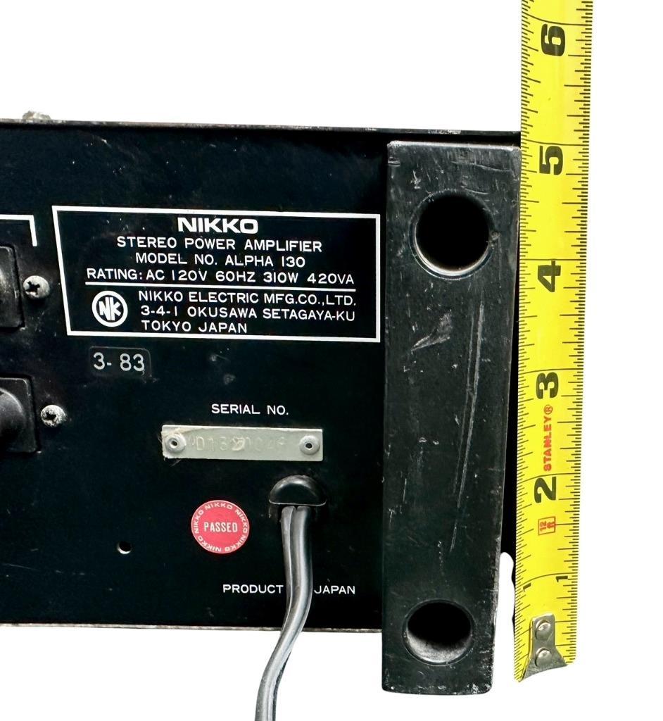 NIKKO Stereo Power Amplifier Model Alpha 130 Powers on but due to lack of equipment we can not fully check it so we are selling it AS-IS For Parts or Repairs Comes as shown