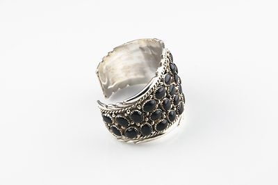 Incredibile Bracciale Cuff In Argento E Onice Vintage Navajo