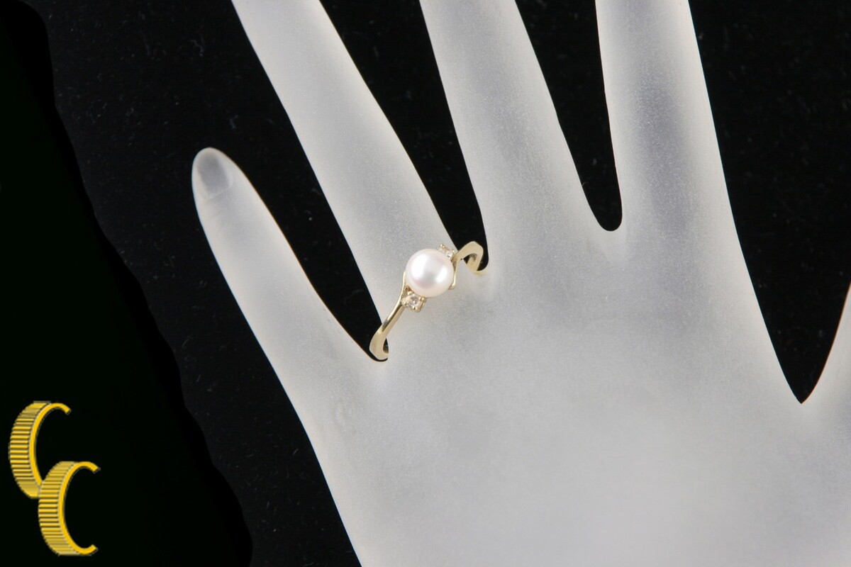 Perlenring aus 14-karatigem Gelbgold mit zwei Diamantakzenten