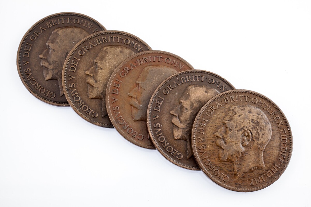 Great Britain Lot of 5 Pennies (1916 - 1921) VF - XF Condition Nice! KM #810