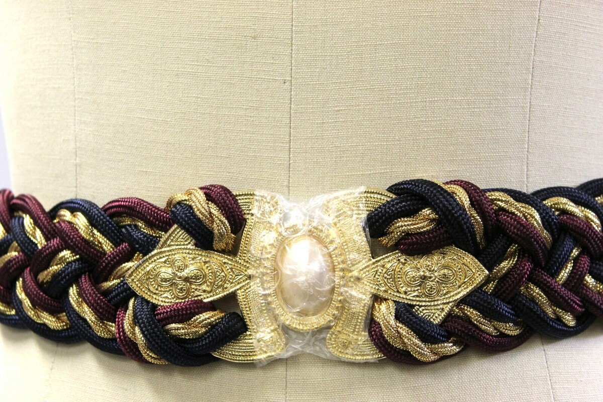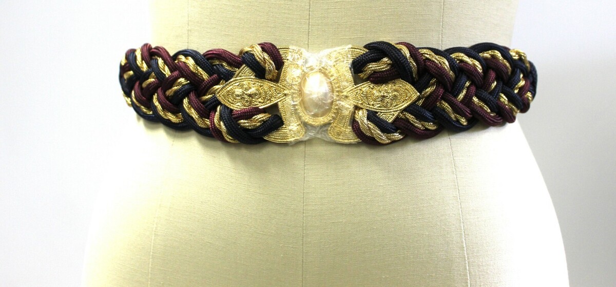 Vintage Doncaster Braided Navy Gold Pearl Buckle Women 80s NWT SML Stretchy