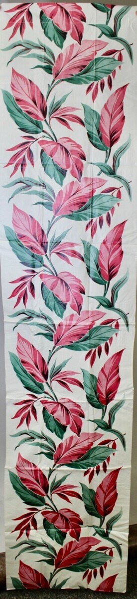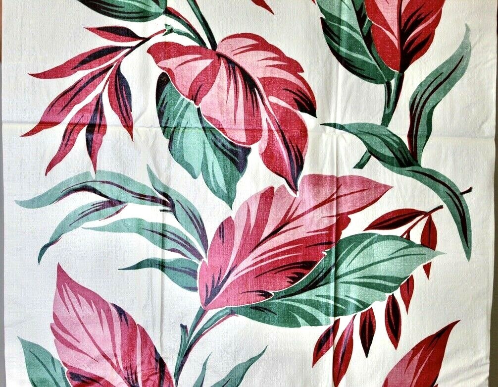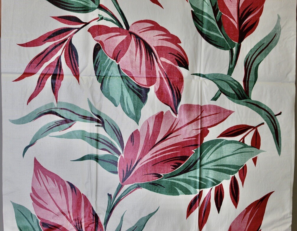 1 Pair VTG MCM Vinyl Plastic Curtains Banana Palm Leaf 80"x18" 1950s Pink Green