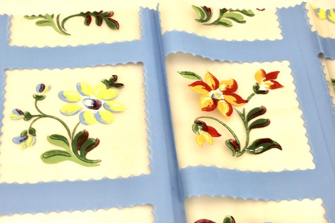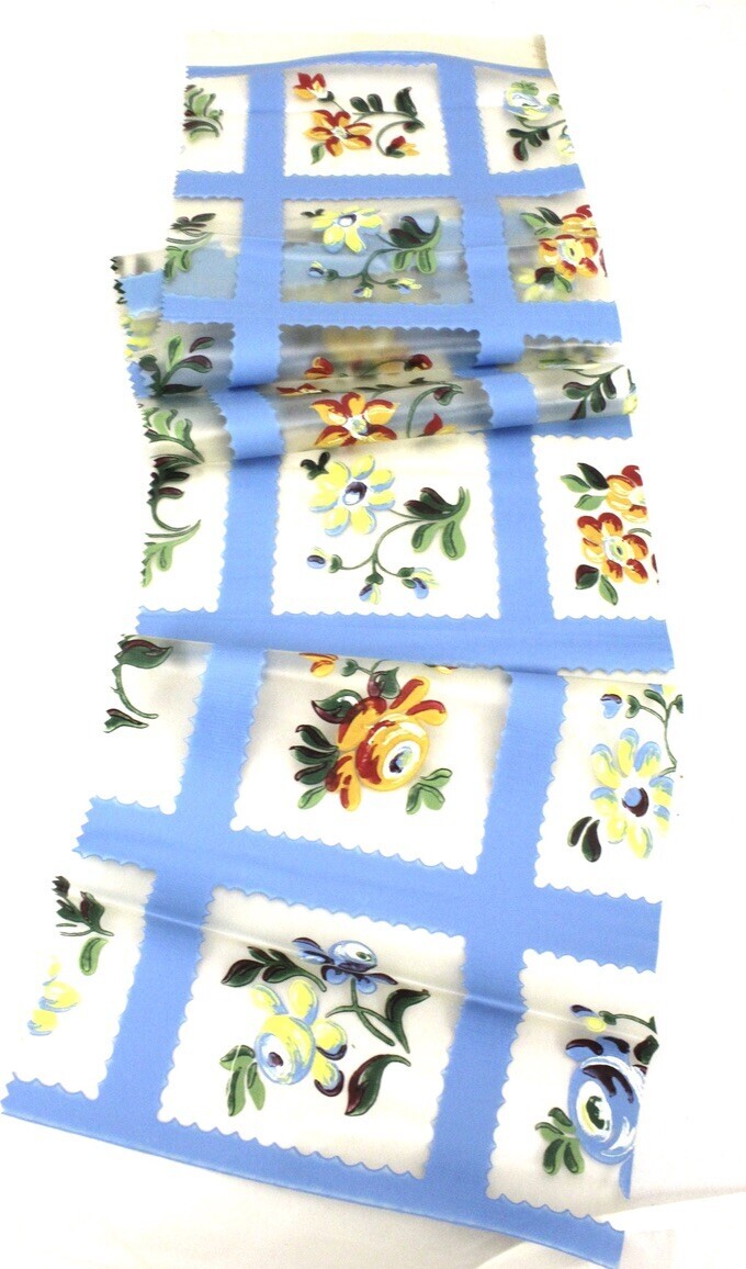 VTG MCM Vinyl Plastic Curtains Floral Cut Up For scraps Blue Orange Red Squares