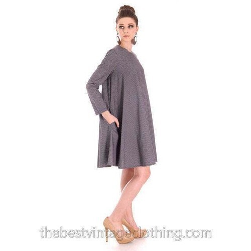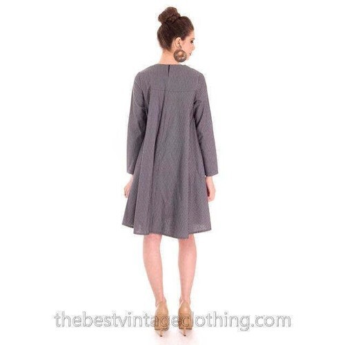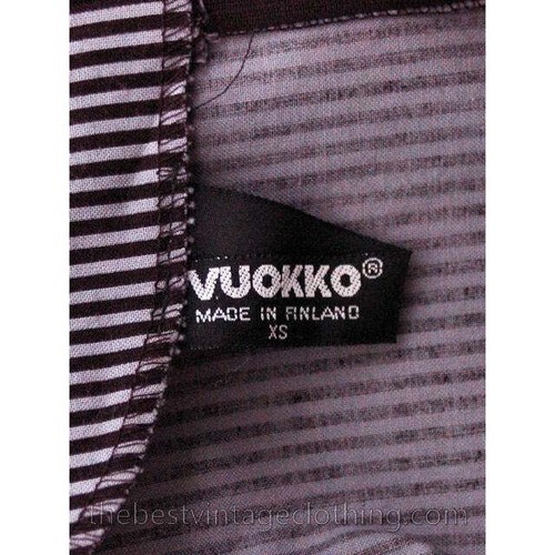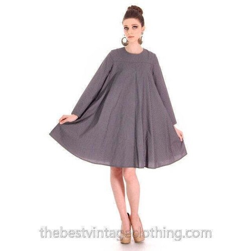 Vintage 1970s Scandinavian Designer Vuokko Gray Stripe A-Line Mini Dress XS