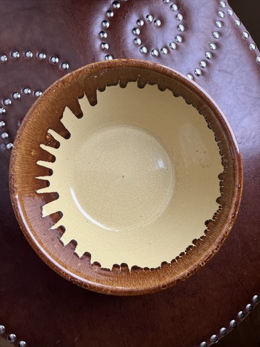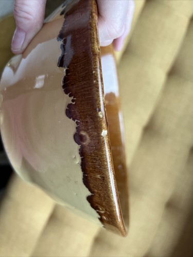vtg RETRO Watt Art Pottery Orchard Ware Brown Drip Glaze Large Yellow Farm Bowl