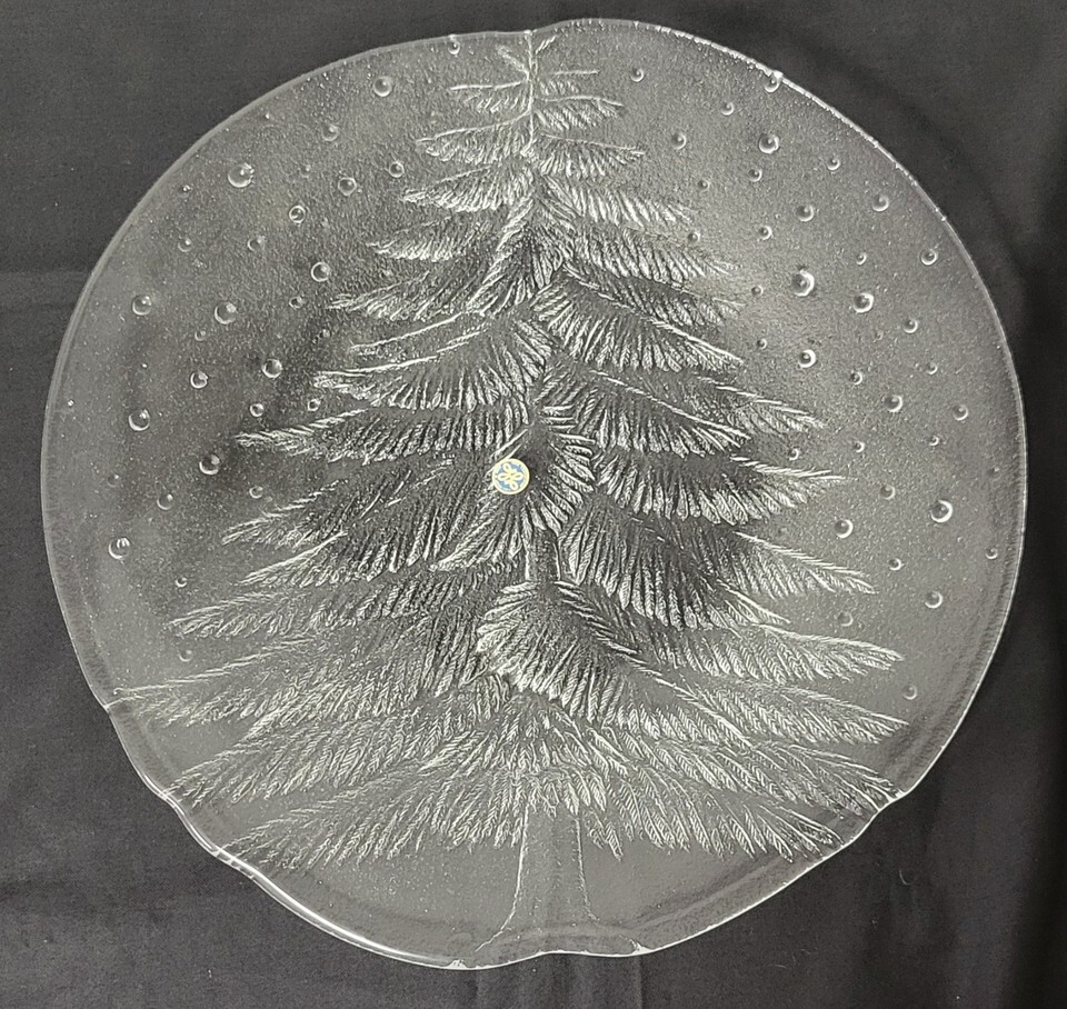 *B) Vintage Christmas Mikasa Crystal Noel Tree Hostess Platter 14.5" Glass