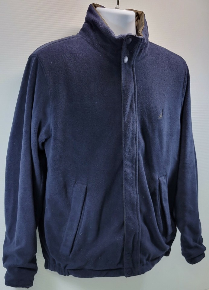 V) Vintage Nautica Reversible Jacket Nylon Olive Green and Blue Fleece Small